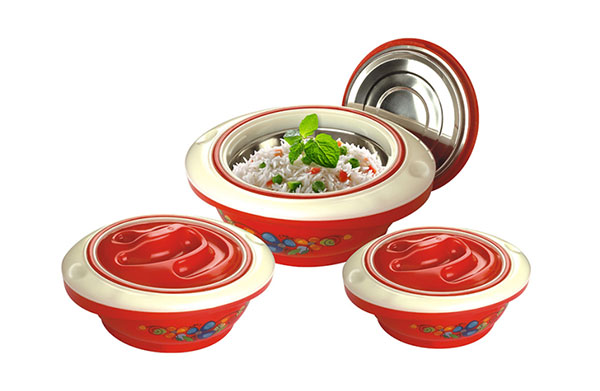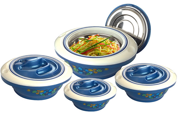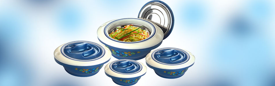 Aura Insulated Casseroles are newly introduced concept in our insulated casseroles series. Attractive shape and design made it very popular. Apart from elegant looks its inner stainless steel wall made it 100% food grade, hygienic, odourless. High quality insulation keep food hot and fresh for longer duration. They are Ideally useful to store as well as serve Hot and Fresh Food. Aura insulated Casseroles are available in Royal colours and capacities. It is seen that Kitchen Lovers buys Aura Casseroles for gifting purpose also.