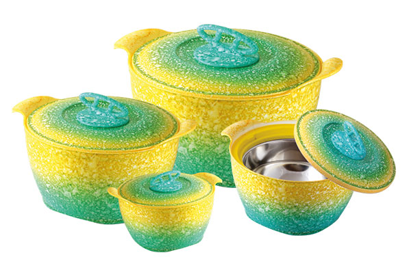 Radiant Insulated Casseroles are newly introduced concept in our insulated casseroles series. Attractive shape and design made it very popular. Apart from elegant looks its inner stainless steel wall made it 100% food grade, hygienic, odourless. High quality insulation keep food hot and fresh for longer duration. They are Ideally useful to store as well as serve Hot and Fresh Food. Radiant insulated Casseroles are available in Royal colours and capacities. It is seen that Kitchen Lovers buys Radiant Casseroles for gifting purpose also.
