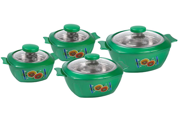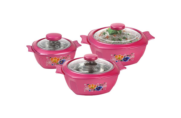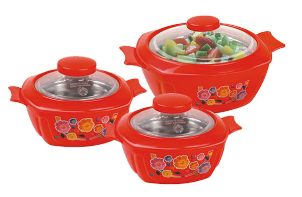 Grand Insulated Casseroles are newly introduced concept in our insulated casseroles series. Attractive shape and design made it very popular. Apart from elegant looks its inner stainless steel wall made it 100% food grade, hygienic, odourless. High quality insulation keep food hot and fresh for longer duration. They are Ideally useful to store as well as serve Hot and Fresh Food. Grand insulated Casseroles are available in Royal colours and capacities. It is seen that Kitchen Lovers buys Grand Casseroles for gifting purpose also.