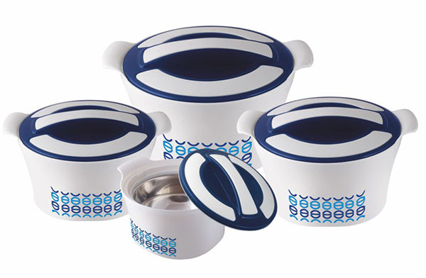 Infinity Insulated Casseroles are newly introduced concept in our insulated casseroles series. Attractive shape and design made it very popular. Apart from elegant looks its inner stainless steel wall made it 100% food grade, hygienic, odourless. High quality insulation keep food hot and fresh for longer duration. They are Ideally useful to store as well as serve Hot and Fresh Food. Infinity insulated Casseroles are available in Royal colours and capacities. It is seen that Kitchen Lovers buys Infinity Casseroles for gifting purpose also.