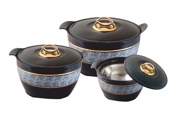 Olivia Insulated Casseroles are newly introduced concept in our insulated casseroles series. Attractive shape and design made it very popular. Apart from elegant looks its inner stainless steel wall made it 100% food grade, hygienic, odourless. High quality insulation keep food hot and fresh for longer duration. They are Ideally useful to store as well as serve Hot and Fresh Food. Olivia insulated Casseroles are available in Royal colours and capacities. It is seen that Kitchen Lovers buys Olivia Casseroles for gifting purpose also.