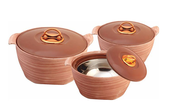 Ozone Insulated Casseroles are newly introduced concept in our insulated casseroles series. Attractive shape and design made it very popular. Apart from elegant looks its inner stainless steel wall made it 100% food grade, hygienic, odourless. High quality insulation keep food hot and fresh for longer duration. They are Ideally useful to store as well as serve Hot and Fresh Food. Ozone insulated Casseroles are available in Royal colours and capacities. It is seen that Kitchen Lovers buys Ozone Casseroles for gifting purpose also.