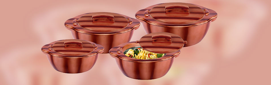 Society Insulated Casseroles are newly introduced concept in our insulated casseroles series. Attractive shape and design made it very popular. Apart from elegant looks its inner stainless steel wall made it 100% food grade, hygienic, odourless. High quality insulation keep food hot and fresh for longer duration. They are Ideally useful to store as well as serve Hot and Fresh Food. Society insulated Casseroles are available in Royal colours and capacities. It is seen that Kitchen Lovers buys Society Casseroles for gifting purpose also.