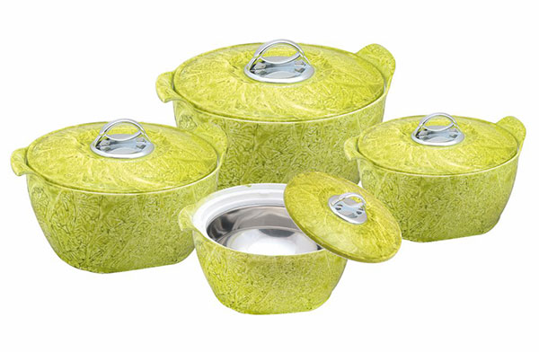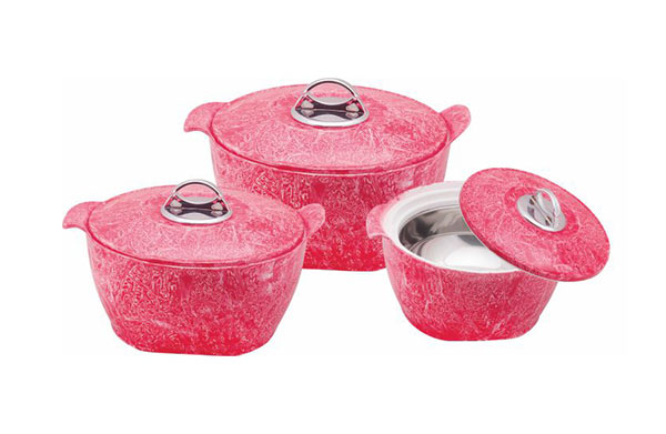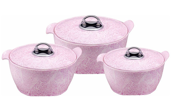 Splash Insulated Casseroles are newly introduced concept in our insulated casseroles series. Attractive shape and design made it very popular. Apart from elegant looks its inner stainless steel wall made it 100% food grade, hygienic, odourless. High quality insulation keep food hot and fresh for longer duration. They are Ideally useful to store as well as serve Hot and Fresh Food. Splash insulated Casseroles are available in Royal colours and capacities. It is seen that Kitchen Lovers buys Splash Casseroles for gifting purpose also.