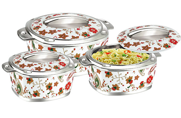 Spring Insulated Casseroles are newly introduced concept in our insulated casseroles series. Attractive shape and design made it very popular. Apart from elegant looks its inner stainless steel wall made it 100% food grade, hygienic, odourless. High quality insulation keep food hot and fresh for longer duration. They are Ideally useful to store as well as serve Hot and Fresh Food. Spring insulated Casseroles are available in Royal colours and capacities. It is seen that Kitchen Lovers buys Spring Casseroles for gifting purpose also.
